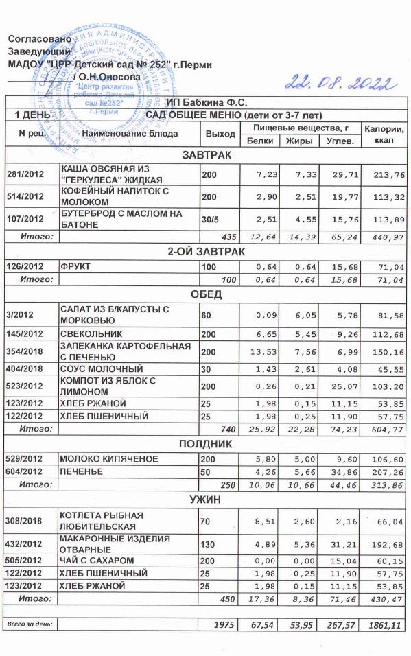 1.08.2022 Меню общее 3-7 лет