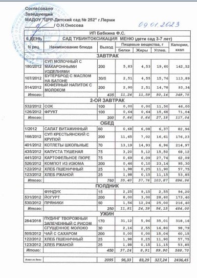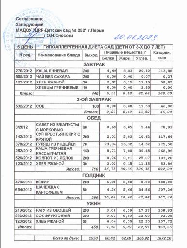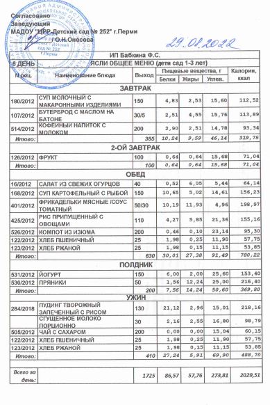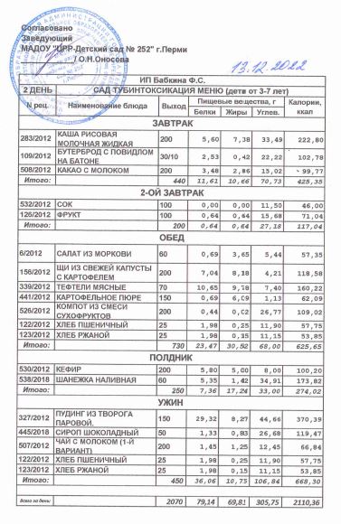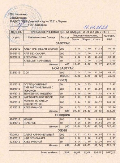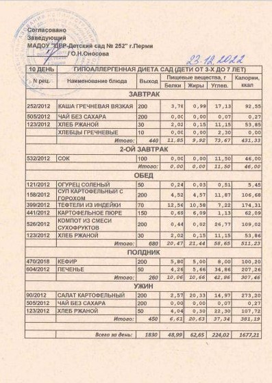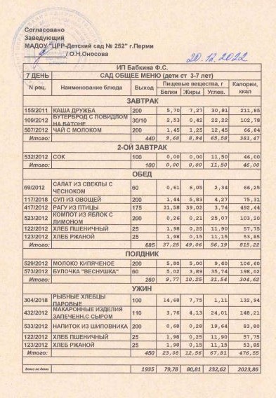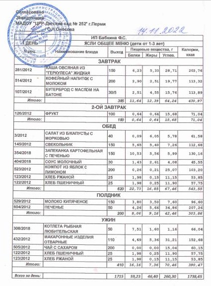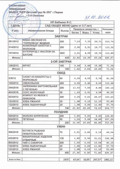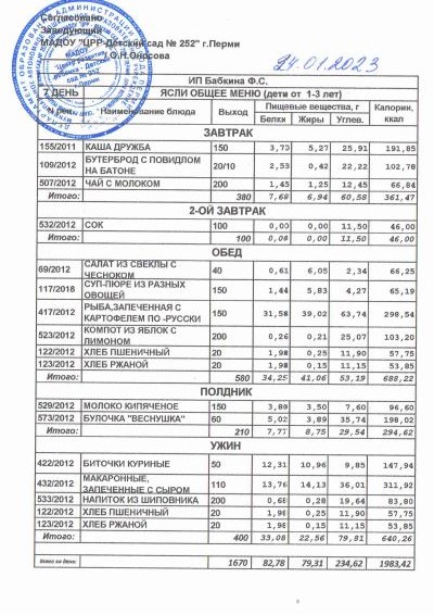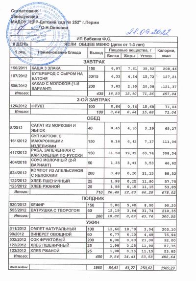 1.08.2022 Меню ясли