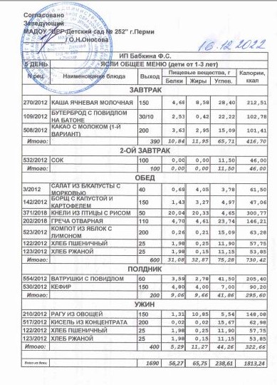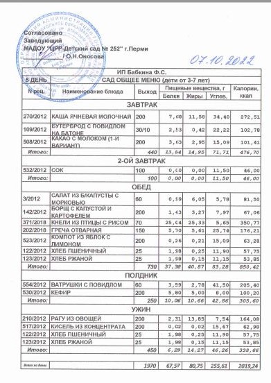5.08.2022 Меню ясли