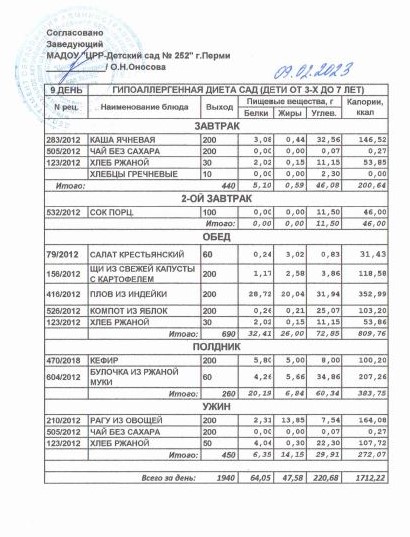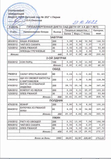 9.08.2022 Меню ясли