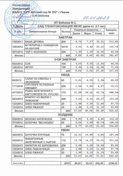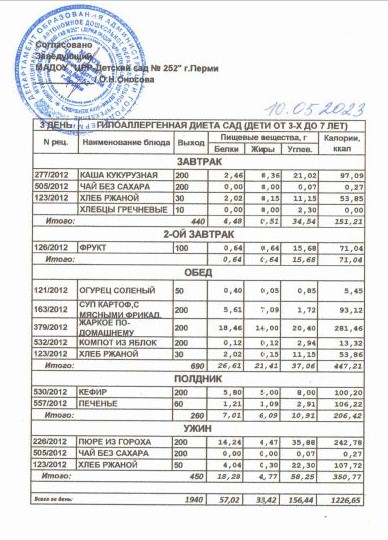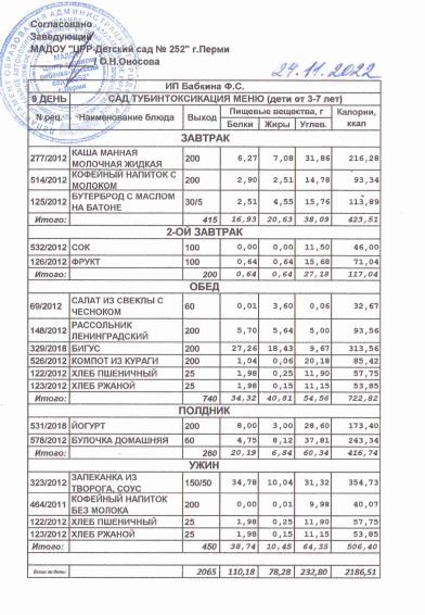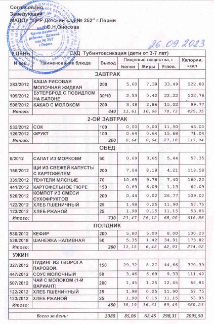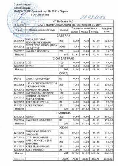 3.08.2022 Меню ясли