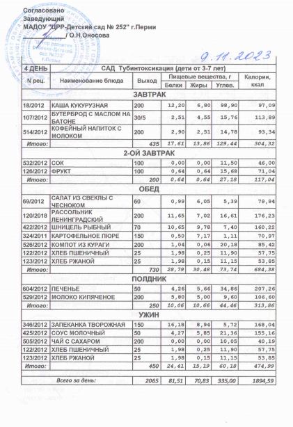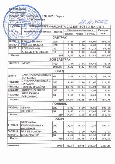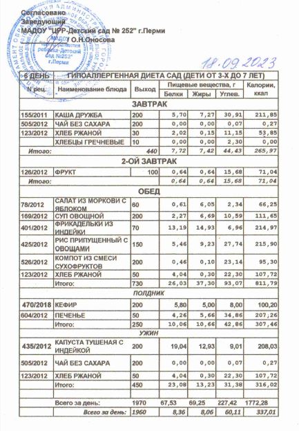 4.08.2022 Меню ясли