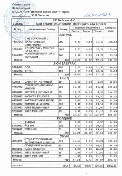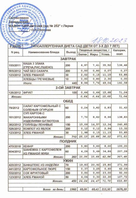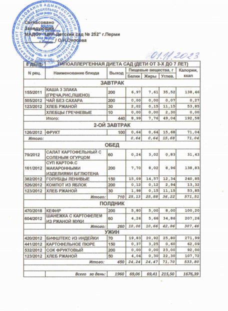 8.08.2022 Меню ясли