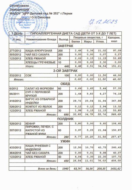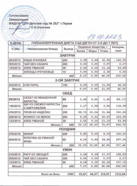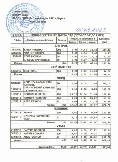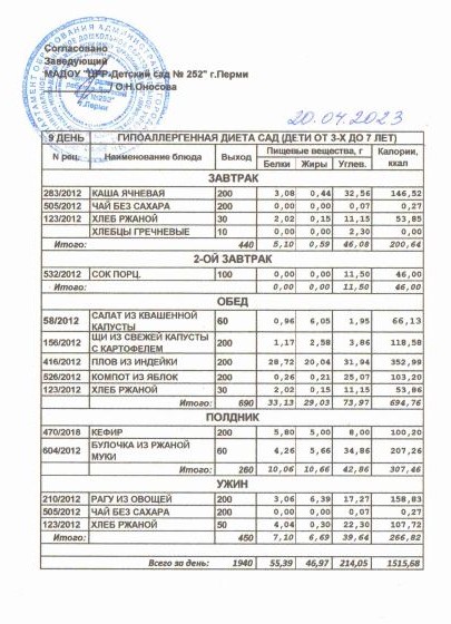 19.04.2024 Меню ясли
