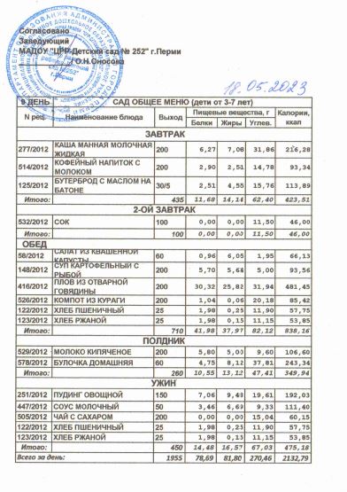 23.05.2024 Меню общее