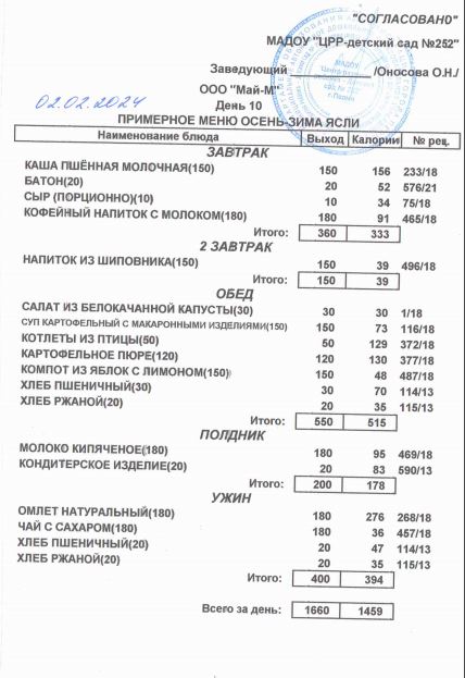 02.04.2024 Меню ясли