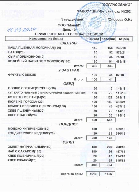 10.04.2024 Меню ясли