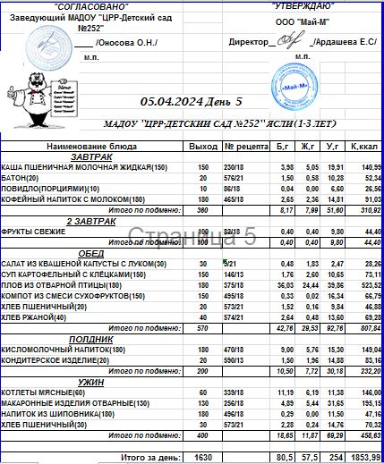 05.04.2024 Меню ясли
