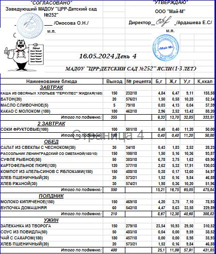 16.05.2024 Меню ясли